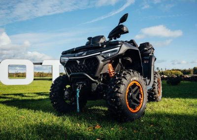 Seu design robusto, com grade hexagonal, faróis LED de alta intensidade e linhas esculpidas, reflete o DNA da CFORCE, enquanto a largura extra e os pneus maiores garantem mais estabilidade e dominância em terrenos desafiadores.