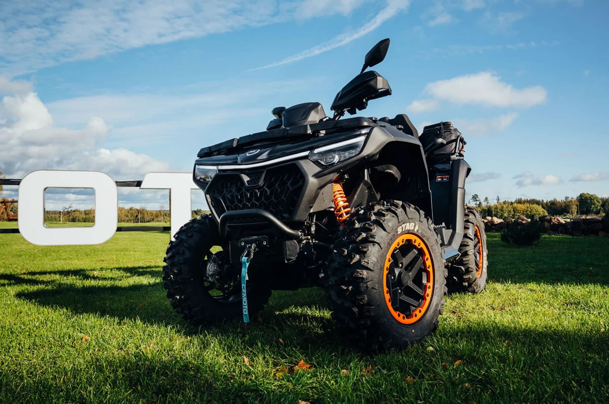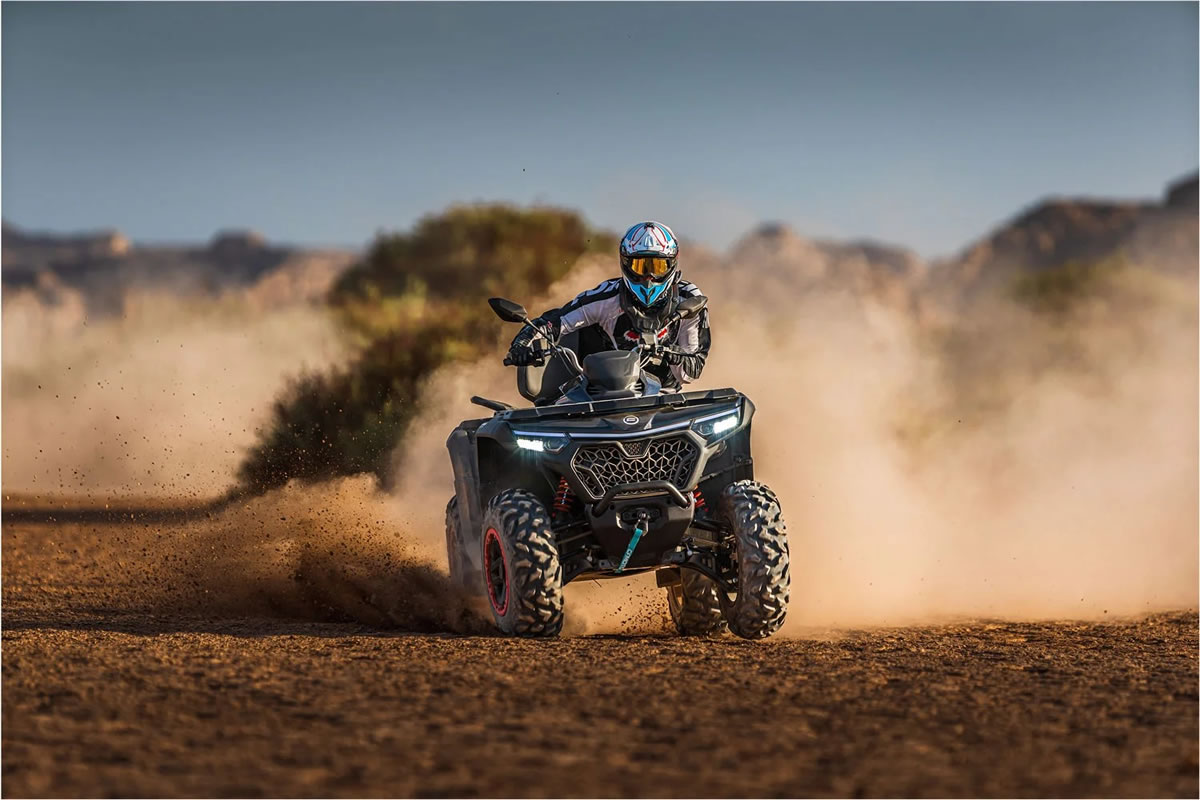 Seu design robusto, com grade hexagonal, faróis LED de alta intensidade e linhas esculpidas, reflete o DNA da CFORCE, enquanto a largura extra e os pneus maiores garantem mais estabilidade e dominância em terrenos desafiadores.