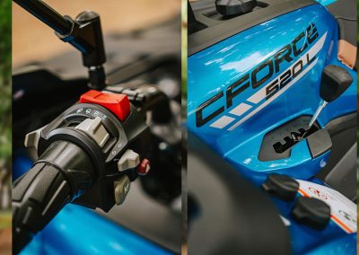 Agora o CFORCE 520 L vem com freios a disco nas quatro rodas e rodas de liga leve. Essa evolução não apenas aprimora a segurança e a eficiência de frenagem, mas também confere um visual moderno e robusto ao veículo. Com essa combinação de características de desempenho e design, o CFORCE 520 L promete proporcionar uma jornada ainda mais emocionante e confiável, atendendo às demandas dos entusiastas que buscam uma experiência off-road superior.