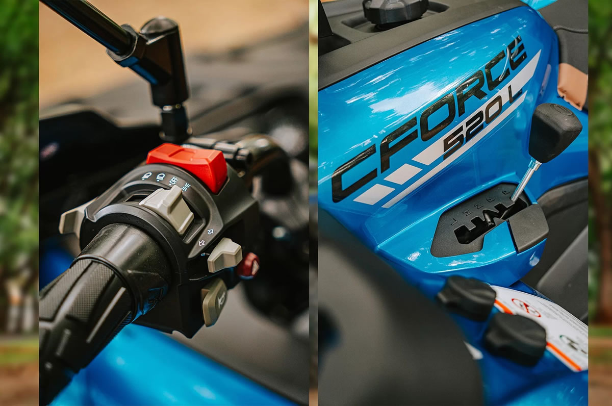 Agora o CFORCE 520 L vem com freios a disco nas quatro rodas e rodas de liga leve. Essa evolução não apenas aprimora a segurança e a eficiência de frenagem, mas também confere um visual moderno e robusto ao veículo. Com essa combinação de características de desempenho e design, o CFORCE 520 L promete proporcionar uma jornada ainda mais emocionante e confiável, atendendo às demandas dos entusiastas que buscam uma experiência off-road superior.